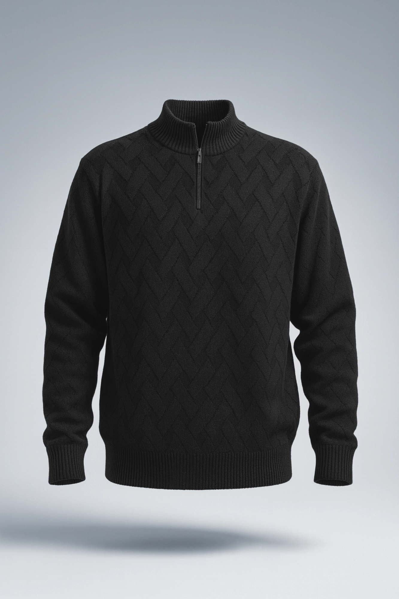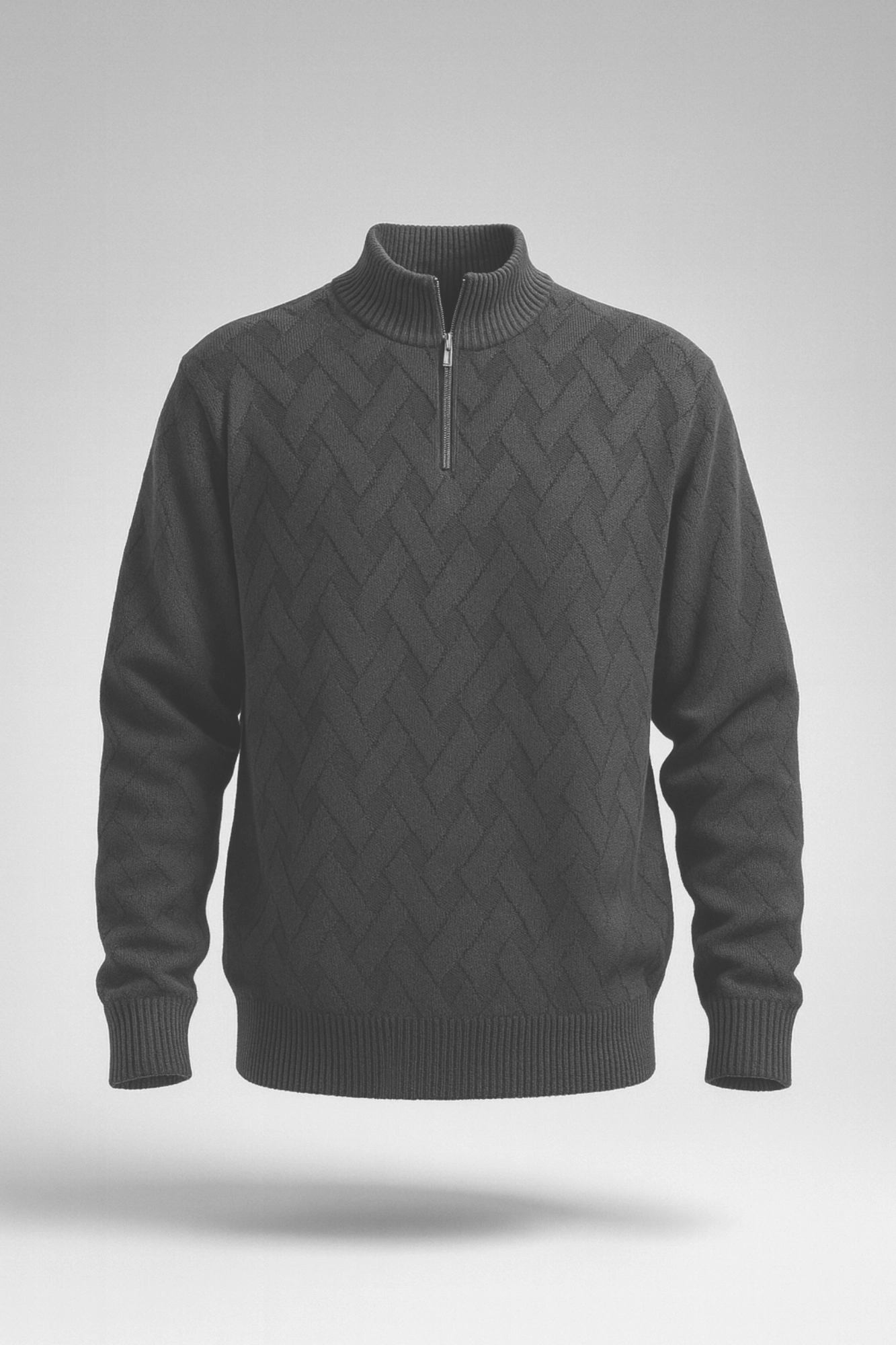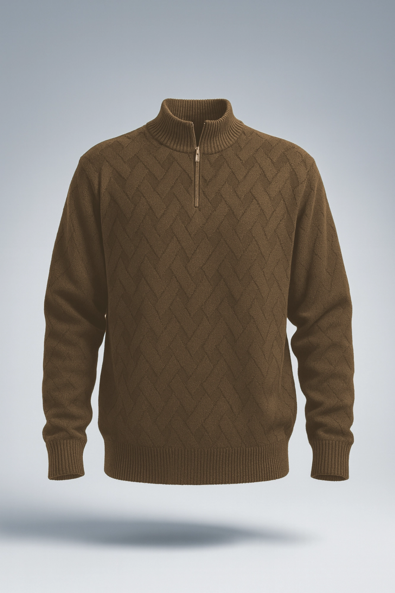 پلیور بافت حصیری زیپی یقه ایستاده