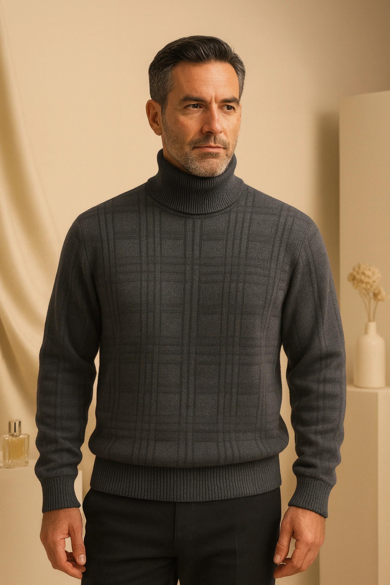 پلیور بافت چهارخونه یقه اسکی